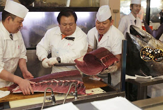Tại phiên đấu giá đầu năm nay ở chợ cá Tsukiji, Tokyo, một kỷ lục mới vừa được thành lập, người chủ của tập đoàn nhà hàng sushi Tokyo đã trả 736 ngàn đô la cho một con cá thu vi xanh nặng 269 ký. Ông cho biết giá mua này ít ra cũng giúp vực dậy việc làm ăn đã gặp nhiều khó khăn vì thiên tai trong năm qua.